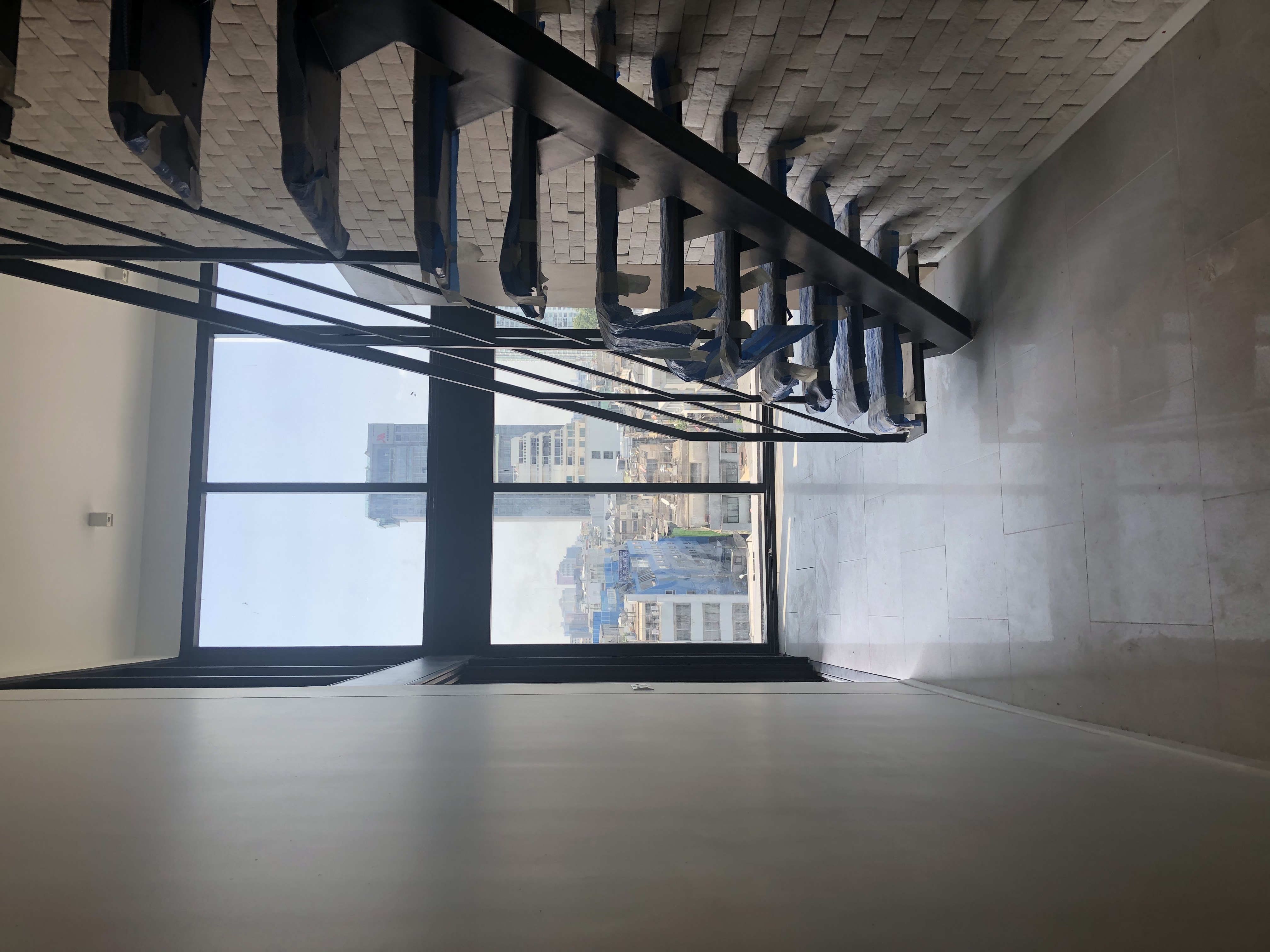 - ห้องออกกำลังกายลอยฟ้าเพดานสูงพร้อมวิวเมืองมุมกว้าง