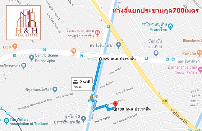700 เมตร ถึง สี่แยกประชานุกูล