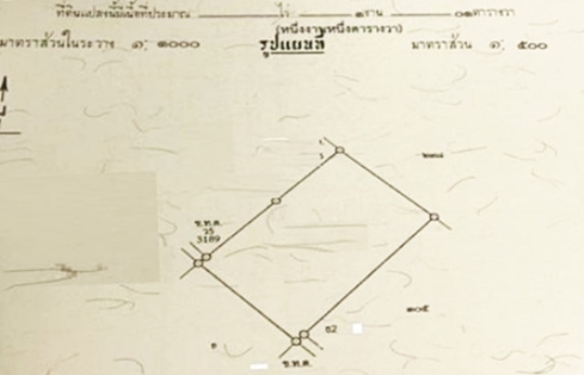 ที่ดินรูปสี่เหลี่ยมผืนผ้า ติดถนนทางทิศตะวันออกเฉียงเหนือ