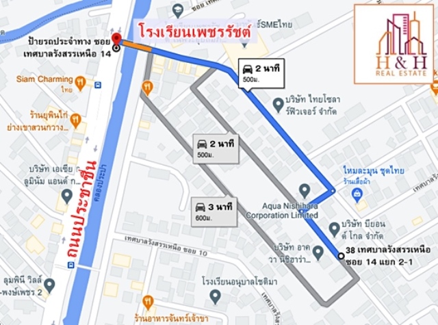 ปากซอยมีจุดสังเกต โรงเรียนเพชรรัชต์