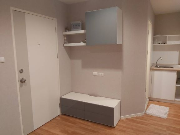 เนื้อที่ 34 ตร.ม. 1 ห้องนอน 1 ห้องน้ำ ชั้น 1 ตึก C1 พร้อมที่จอดรถ ติดถนนใหญ่ นวมินทร์ มีระเบียง เทอเรสด้านหน้าติดสวน เข้าออกได้ 2 ทาง มีความเป็นส่วนตัว วิวสวย