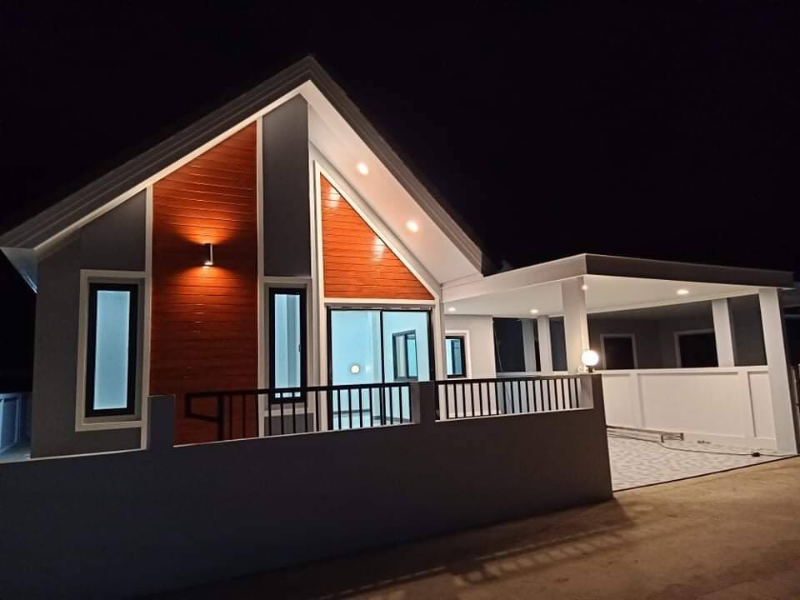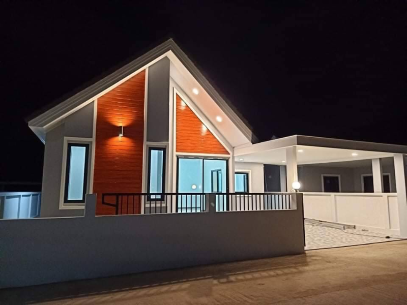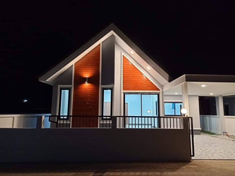 หลังคาใช้กระเบื้องแผ่นเรียบเพรสทีจตราช้างอย่างดี รับประกันโครงสร้างบ้านนานถึง