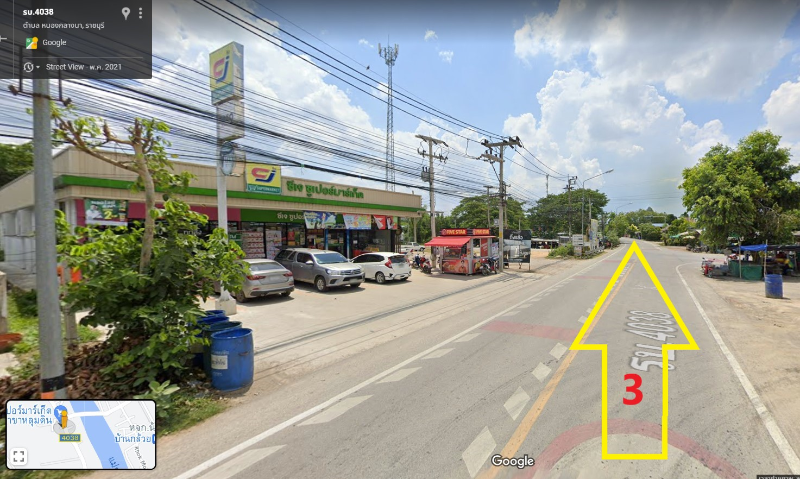ตำแหน่งที่ดินวิ่งขึ้นมาจาก หลักชัยค้าสุรา 250 เมตร อยู่ขวามือ
