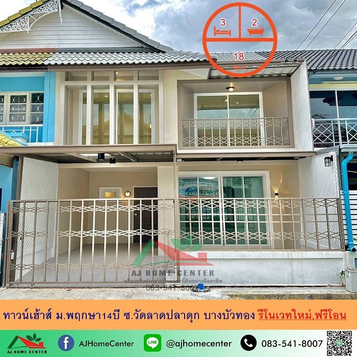 ทาวน์เฮาส์ 2 ชั้น หมู่บ้าน นวรัตน์ จันทร์ทองเอี่ยม ใกล้ MRT สถานีบางใหญ่ บางบัวทอง นนทบุรี