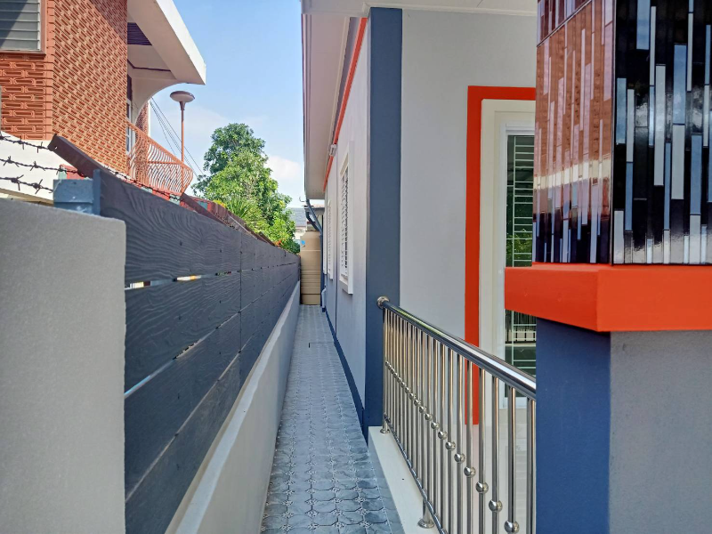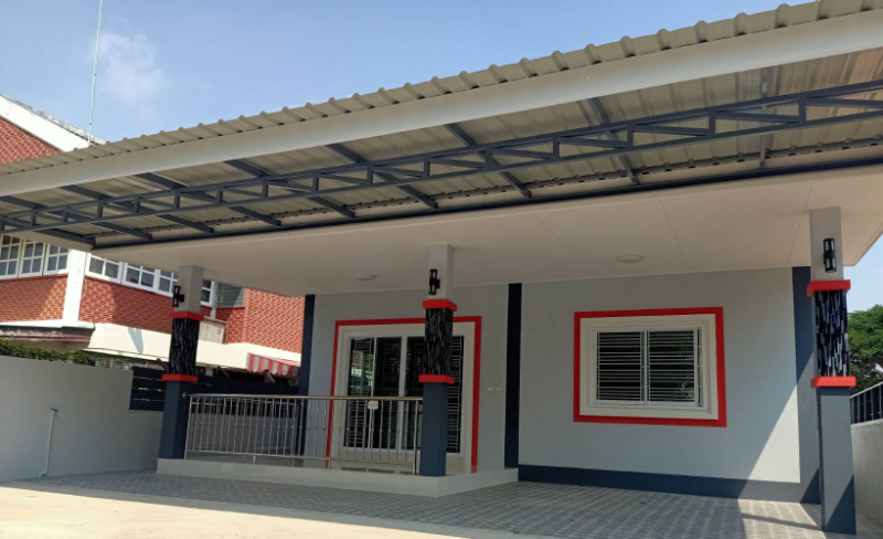 ต่อเติมหลังคาหน้าบ้านที่จอดรถและตีระแนงข้างบ้านเรียบร้อย