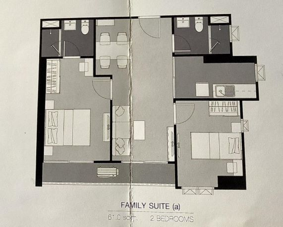 เนื้อที่ 61 ตร.ม. 2 ห้องนอน 2 ห้องนอน 1 ห้องรับแขก