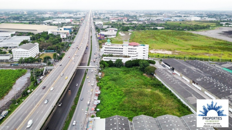 ขายที่ดินทำเลสวยติดถนนใหญ่ รูปสี่เหลี่ยมผืนผ้า เนื้อที่ 8 ไร่กว่า ใกล้ โรงพยาบาลบางนา ทางด่วน