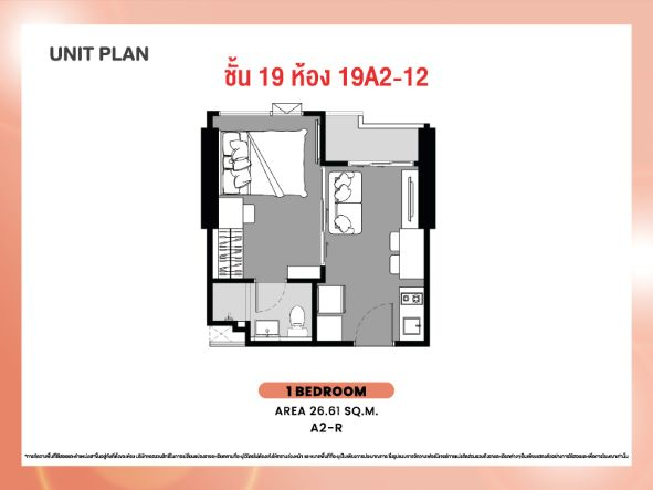 ใกล้ mrt ห้วยขวาง เดิน 5 นาทีถึง ขนาดห้อง 26.33 ตร.ม. 1 ห้องนอน 1 ห้องน้ำ ชั้น 19