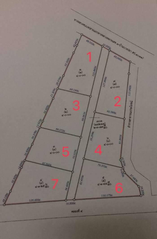 位置好,每块4 rai,混凝土路16米宽。