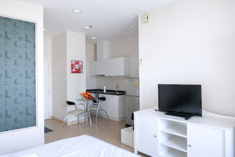 ห้องขนาด 42 ตรม ชั้น 18 เป็นห้องมุม เงียบสงบ ไม่มีเสียงรบกวน ห้องตกแต่งพร้อมอยู่ อุปกรณ์ครบ โซฟา ชั้นวางหนังสือ เตียง ตู้เย็น ทีวี ไมโครเวฟ