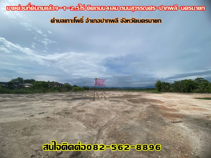 ขายด่วนที่ดินถมแล้ว9-1-2.5ไร่ ติดถนน4เลน ถนนสุวรรณศร-ปากพลี-นครนายก