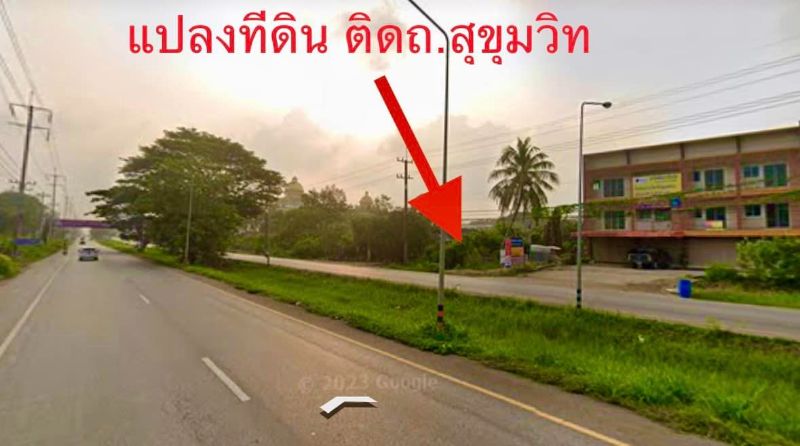 ทำเลดี ติดถนนสุขุมวิท ขาเข้า ใกล้กับมหาวิทยาลัยเฉลิมกาญจนา