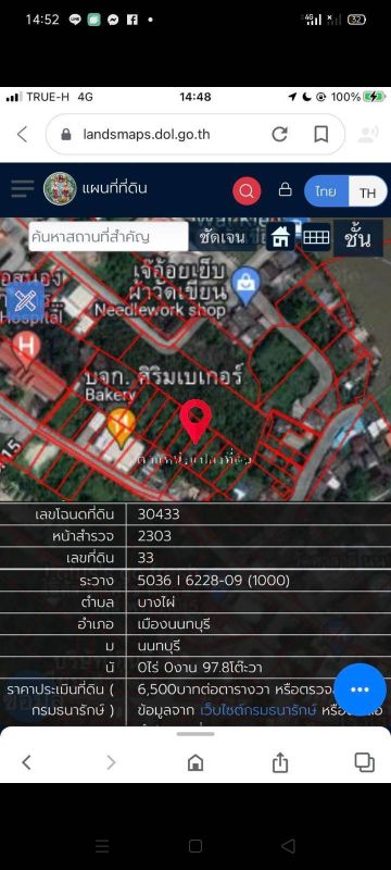 ขายที่ดิน เนื้อที่ 97.8 ตร.ว. บางไผ่ นนทบุรี