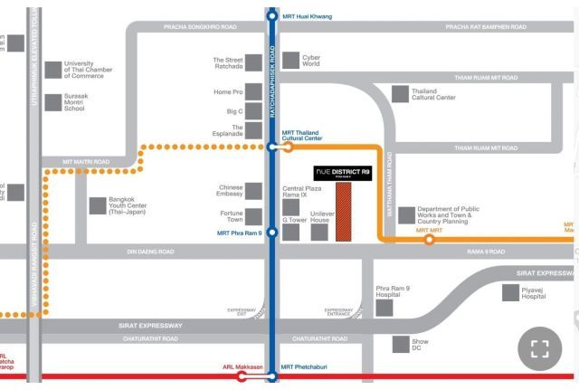 - ใกล้ MRT พระราม 9 (สายสีน้ำเงิน) และ สายสีส้ม (เสร็จปี 2029)
