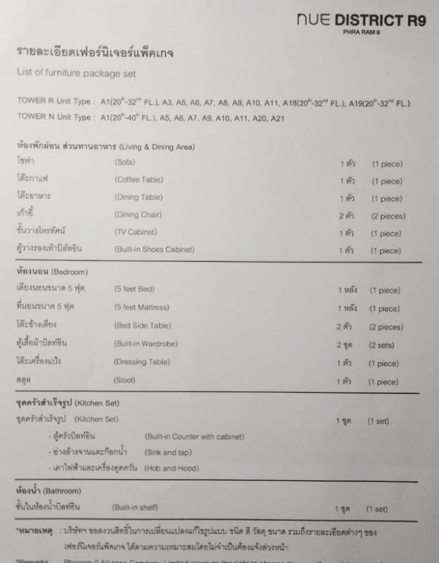 - 2 ตึก ห้องชุดพักรวม 1,441 ยูนิต + ร้านค้า 1 ยูนิต พร้อมที่จอดรถ คิดเป็น 40% ไม่รวมจอดซ้อนคัน