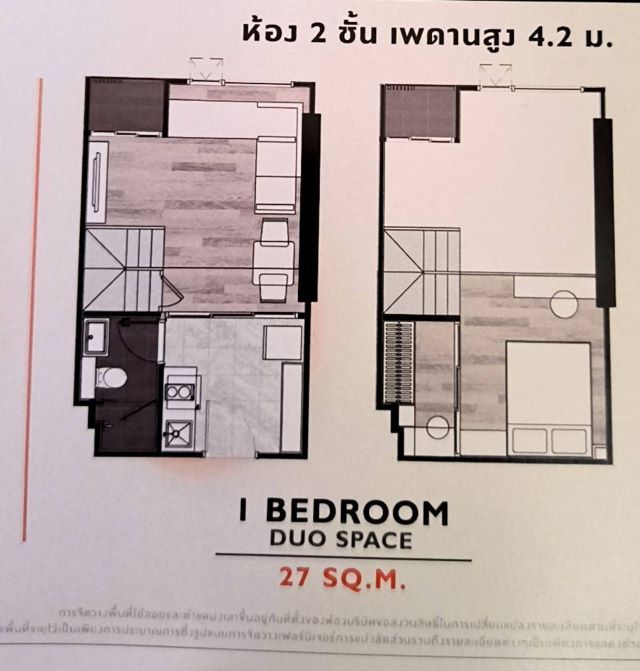 ห้องนอน 1ห้องนอน (Duo Space) 1 ห้องน้ำ