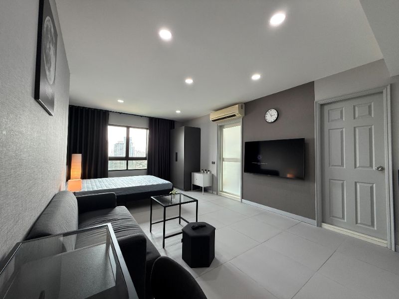 เนื้อที่ 30 ตร.ม. 1 ห้องนอน 1 ห้องน้ำ ตึก A ชั้น 7 แยกระหว่างห้องนั่งเล่นกับห้องนอน (แอร์ 2 ตัว)