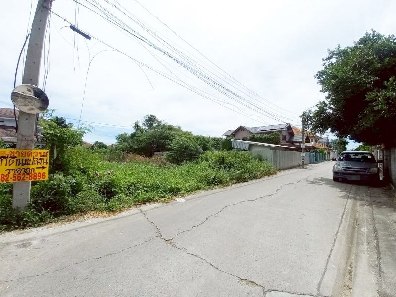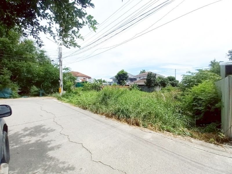 It is a corner plot of land, adjacent to public roads on both sides, both Soi Ram Intra 65 and Soi Ram Intra 67, the road in front of the land is 4 meters wide, not yet filled, not more than 1 meter lower than the road