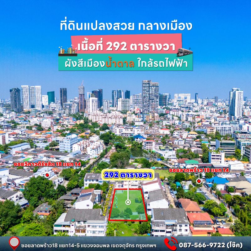 ขายที่ดินแปลงสวยทำเลดี ใจกลางเมืองลาดพร้าว 18 เขตจตุจักร กรุงเทพ (เจ้าของขายเอง)