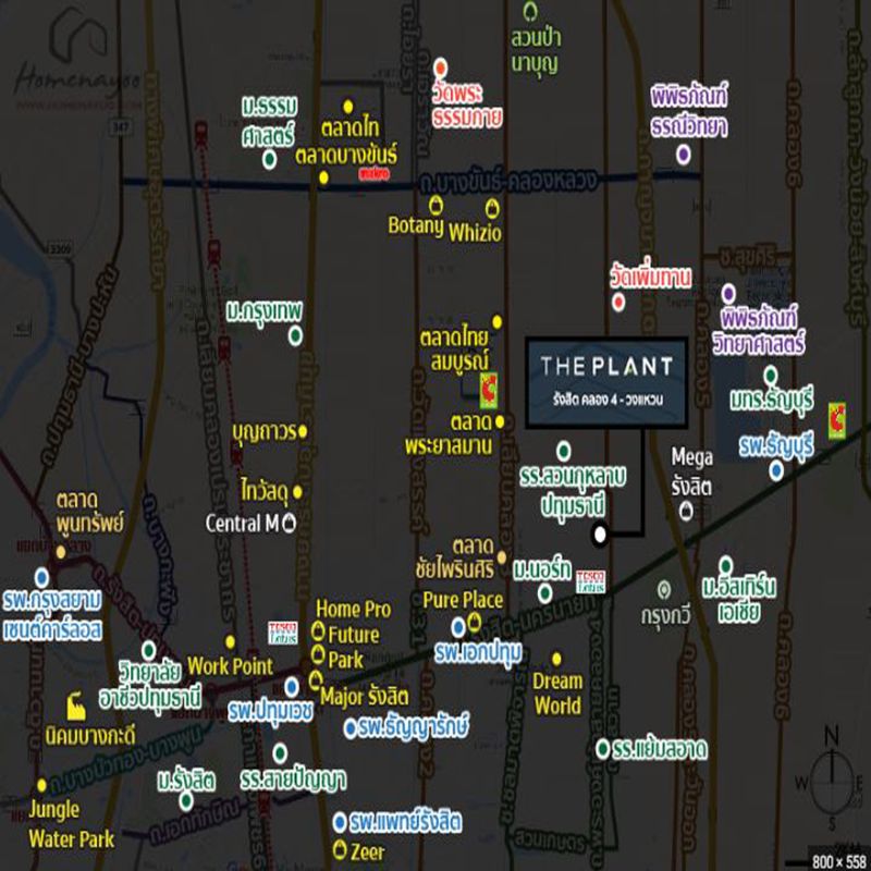 - ม.เดอะแพลนท์ รังสิต คลอง4-วงแหวน ถ.รังสิตคลอง4 ต.คลองสี่ อ.คลองหลวง จ.ปทุมธานี