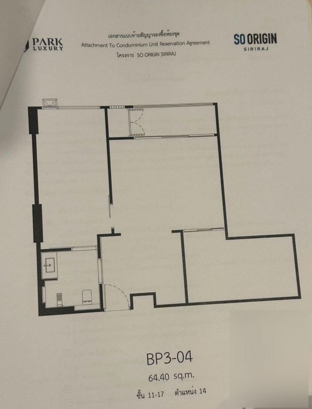 พื้นที่ห้อง 64.40 ตรม. 2 ห้องนอน 1 ห้องน้ำ
