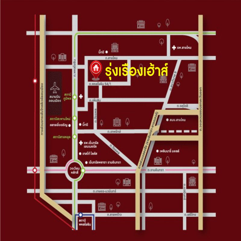 - ม.รุ่งเรืองเฮ้าส์ ซ.พหลโยธิน54 แยก 10-2 ถ.พหลโยธิน แขวงคลองถนน เขตสายไหม กรุงเทพฯ
