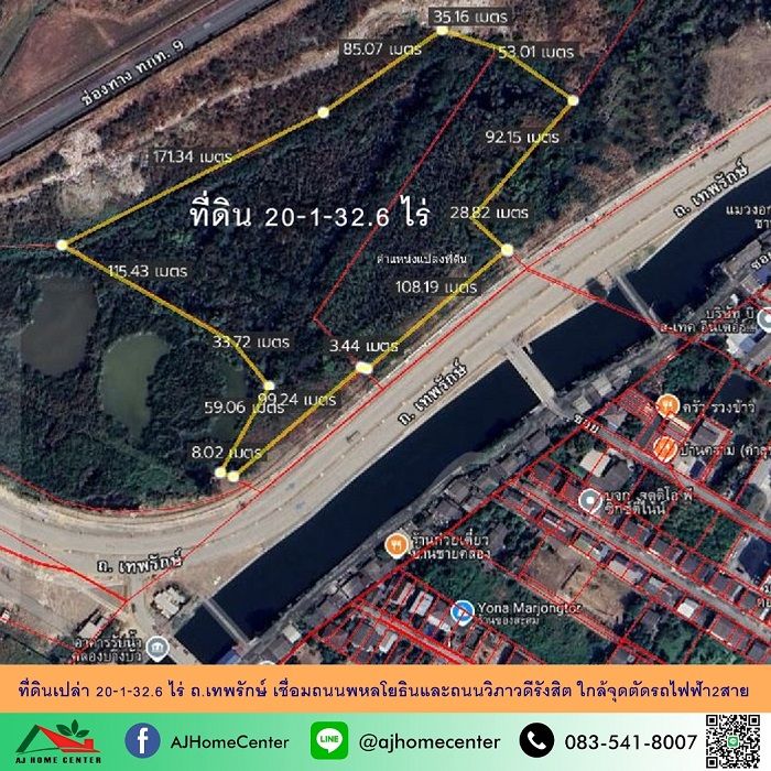 - Land area: 1-2-36 rai, 87.5 meters wide, 29.10 meters deep, suitable for residential development, warehouses, and shophouses. Good location with convenient stores, shops, and restaurants.