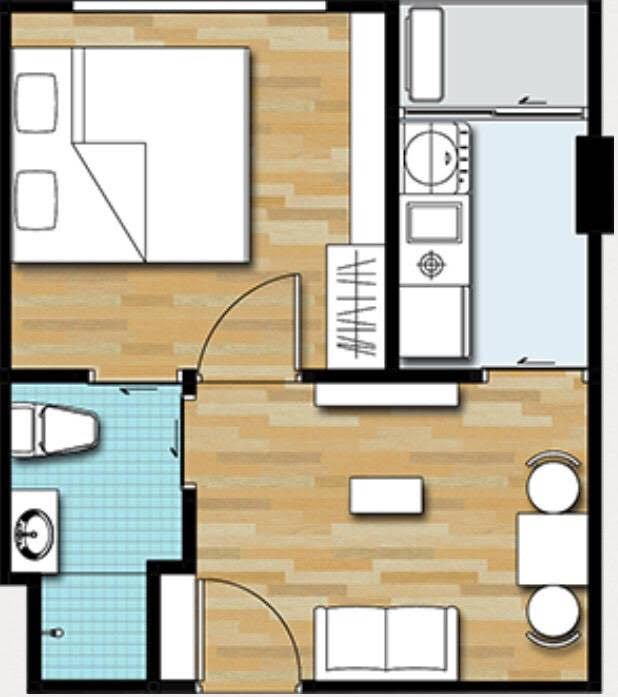 เป็นคอนโด low rise 8 ชั้น 1 อาคาร เนื้อที่ 28 ตรม. 1 ห้องนอน 1 ห้องน้ำ ชั้น 5 ที่จอดรถสะดวกสบาย