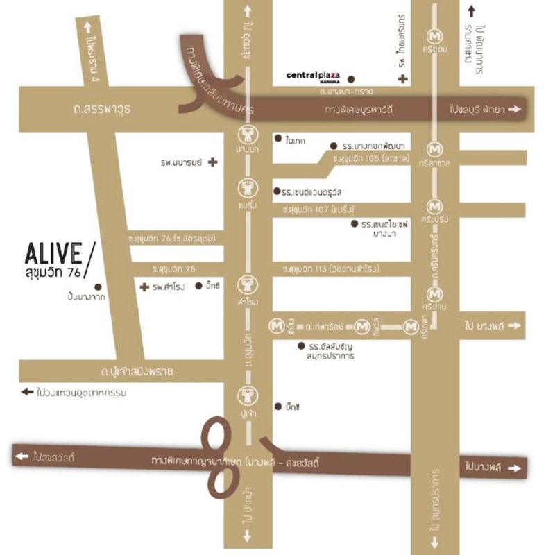 - คอนโดเอไลฟ์ สุขุมวิท76 อาคารA ซ.สุขุมวิท76 ถ.สุขุมวิท ต.สำโรงใต้ อ.พระประแดง จ.สมุทรปราการ