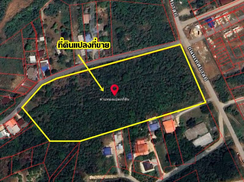 - Area: 15-1-27 rai (approximately 6,488 sq m), frontage 99.42 meters, depth 246.52 meters. Suitable for residential housing.
