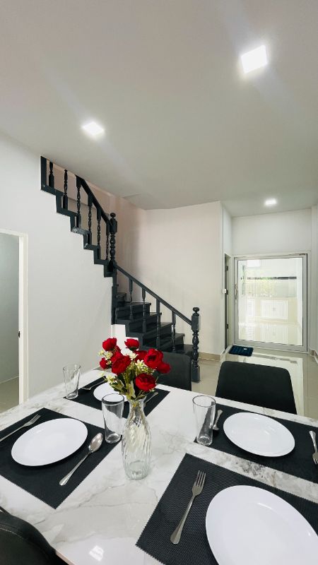 รูปแบบ : ทาวน์เฮาส์ 2 ชั้น มีระเบียงด้านหน้าและด้านหลัง