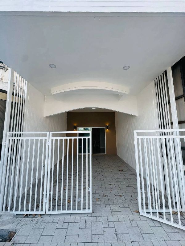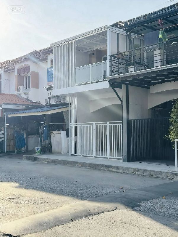 ทาวน์เฮ้าส์ 2 ชั้น ถนนเมน ตกแต่งใหม่พร้อมอยู่ มีระเบียงด้านหน้า ถนนบ้านกล้วยไทรน้อย