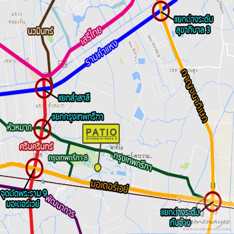 - ม.พาทิโอ ศรีนครินทร์-พระราม9 ถ.กรุงเทพกรีฑา แขวงหัวหมาก เขตบางกะปิ กรุงเทพมหานคร
