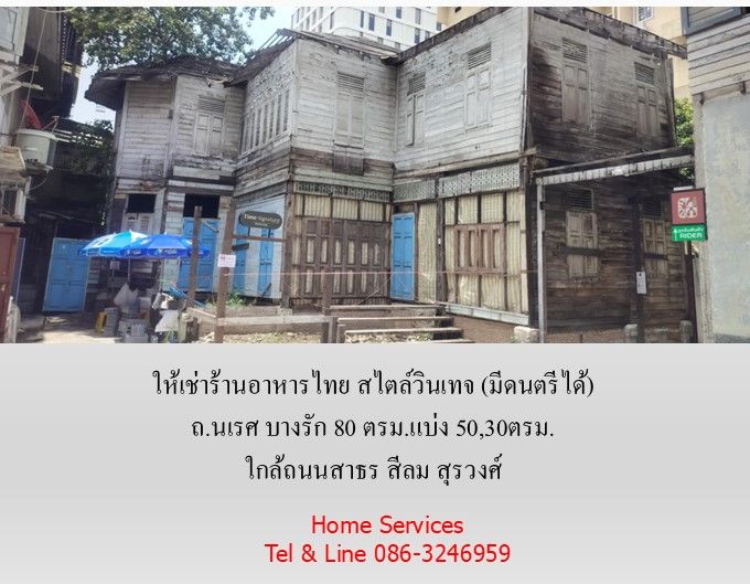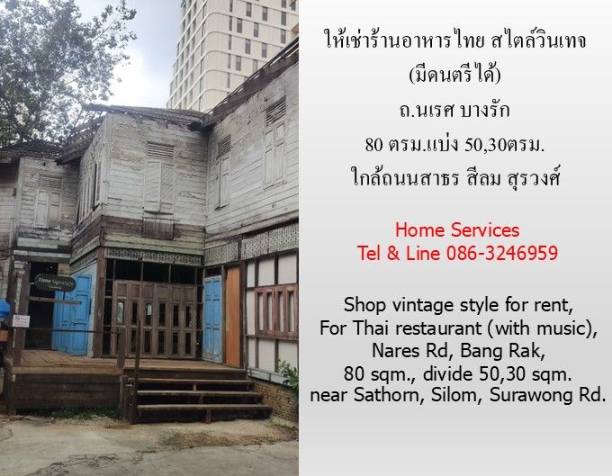 ให้เช่าร้านอาหารไทย สไตล์วินเทจ (มีดนตรี) ถ.นเรศ บางรัก 80 ตรม.แบ่ง 50,30ตรม. ใกล้ถนนสาธร สีลม สุรวงศ์