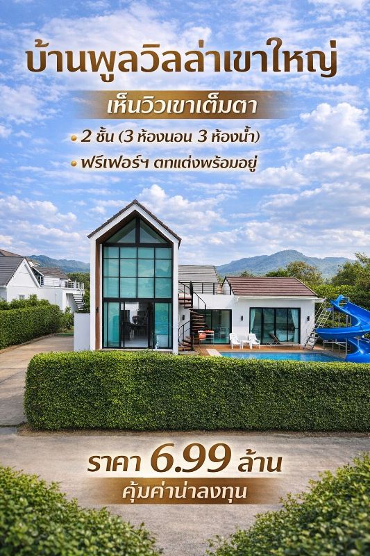 ชมรีวิว : บ้านพูลวิลล่าเขาใหญ่ เหมาะ ( ลงทุน หรือ พักตากอากาศ ) | 6.99 ลบ. | ศักยภาพ ดีมาก