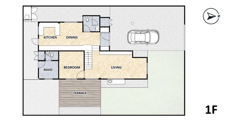 - 1 ห้องแม่บ้าน (ห้องน้ำในตัว)