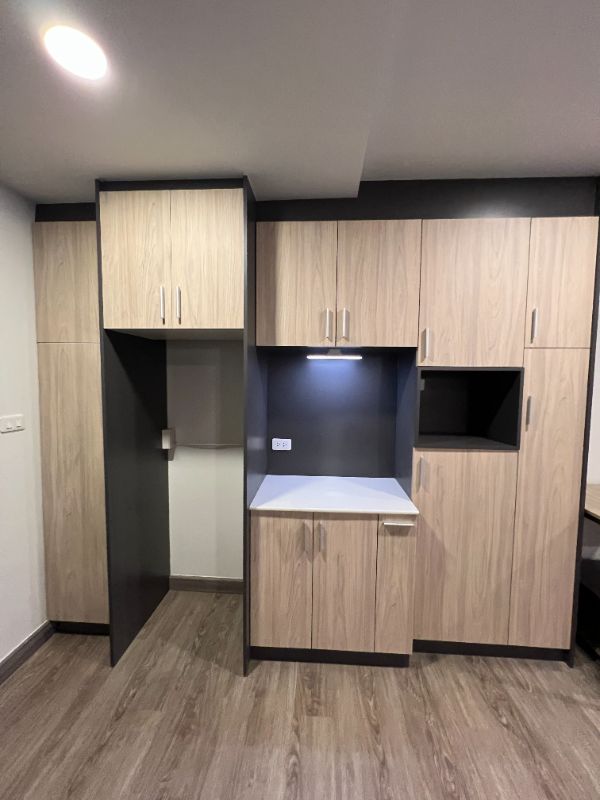 - มีพื้นที่เว้นสำหรับวางตู้เย็น พร้อมปลั๊กไฟครบ