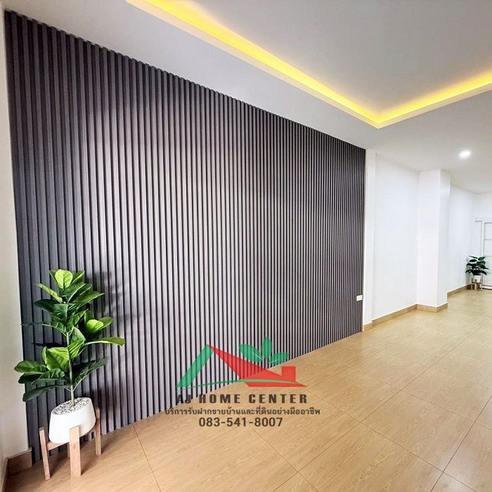 - ห้องโถงกว้าง ตกแต่งผนังระแนงสไตล์ Minimal