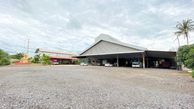 ติดถนนเพชรเกษมสายหลัก โครงสร้างโรงงานแข็งแรง สูงโปร่ง หลังคาเมทัลซีทกันความร้อน มีหม้อแปลงไฟฟ้าแล้ว เป็นอู่ต่อรถบัสมีใบอนุญาต สามารถดำเนินกิจการต่อได้เลย
