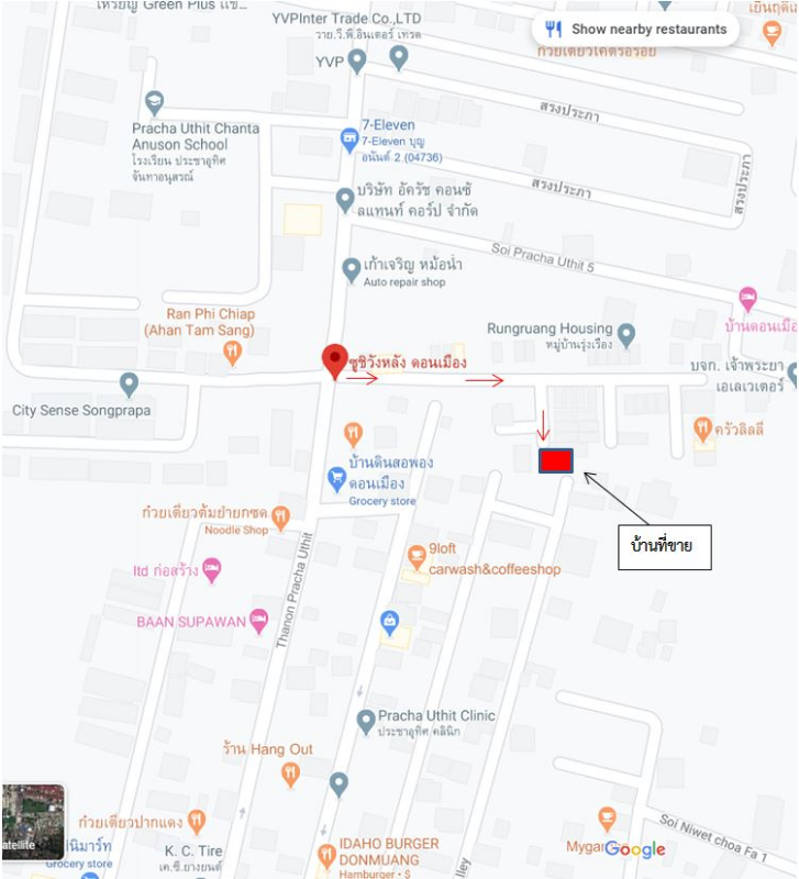- ซอยประชาอุทิศ 5/1 (หน้าปากซอยมีร้าน 24 Twenty Four และ CAKE HOUSE ดอนเมือง) บ้านห่างจาก ถ.ประชาอุทิศ เพียง 150 เมตร