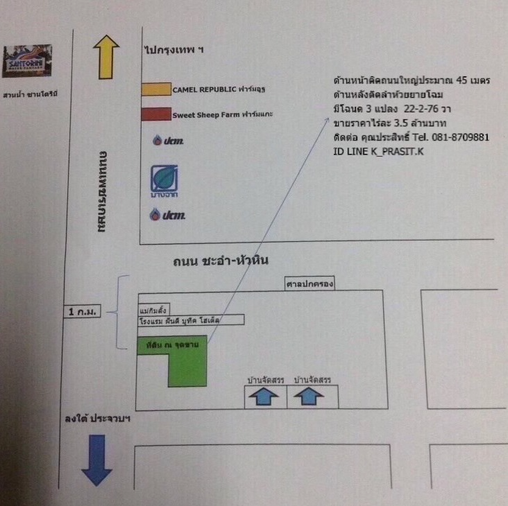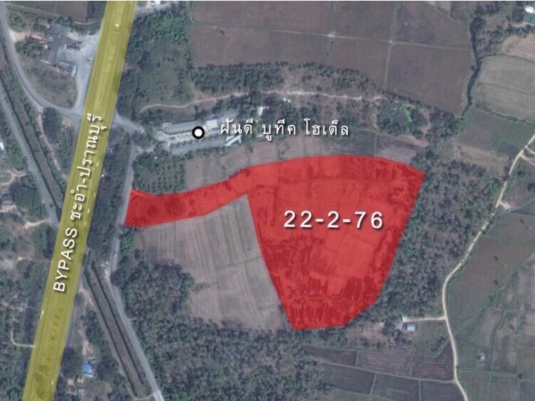 ที่ชะอำ ติด ถ.Bypass ชะอำ-ปราณบุรี 22ไร่ ราคาไร่ละ3.5 ล้าน ด้านหลังที่ติดลำห้วยยายโฉม