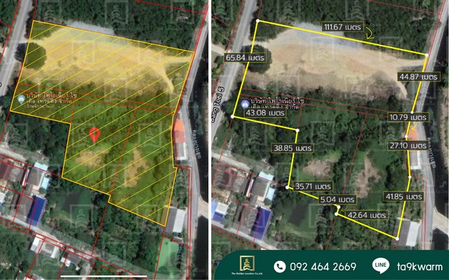 ขนาดพื้นที่ : 6 ไร่ 3 งาน 82.6 ตารางวา หน้ากว้างที่ดิน 65.84 เมตร ที่ดินรวม 6 แปลง