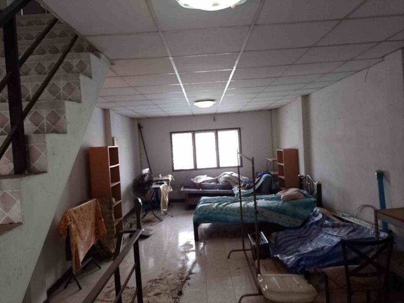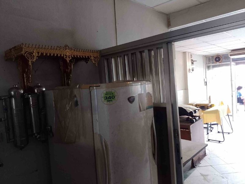 This location is rare to find. There are 3 air conditioners with furniture, and a large refrigerator. The balcony on the second floor has a water pump and a steel frame to prevent theft. As for the ceiling on the 3rd floor, a steel frame was made to avoid theft from climbing down the roof as well. The ground floor has a large carved glass that makes the room look wider, but the building needs to be cleaned—selling as it is, the price is 3,090,000 baht.
