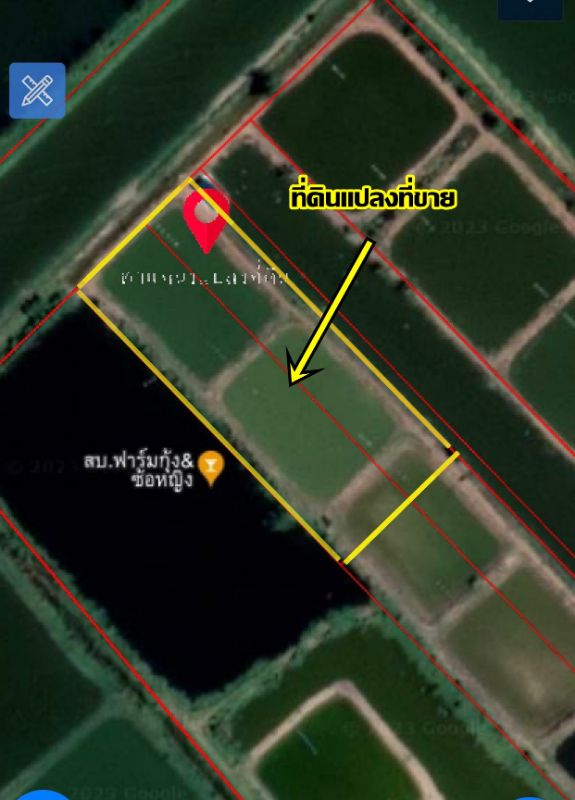 ขนาดเนื้อที่ 5-1-80ไร่ หน้ากว้าง 163 เมตรความลึก 53.49เมตร เป็นที่ดินทำบ่อปลา กุ้งบ่อปลา ซื้อต่อยอด ทำธุรกิจต่อได้เลยหรือซื้อไว้เก่งกำไร