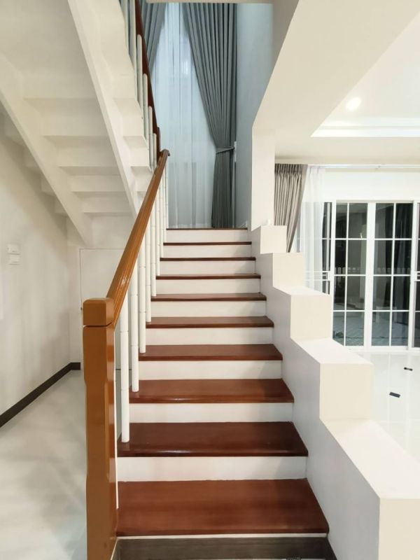 - ฝ้าด้านล่างตกแต่งเป็นฝ้าฉาบเรียบ