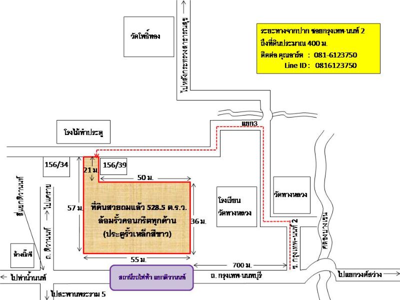 ขายที่ดิน 528.5 ตร.ว. ติดแนวรถไฟฟ้า ซอยกรุงเทพ-นนท์2 สวยถมแล้ว