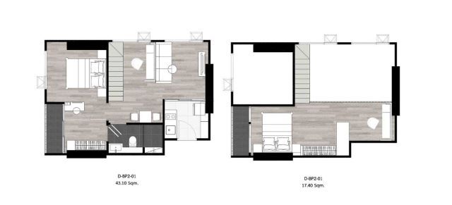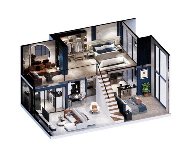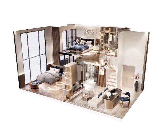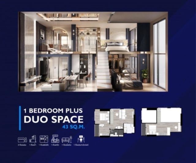 ห้องแบบ Duo Space ห้อง 2 ชั้น พื้นที่ใช้สอยทั้งหมด 60.5 ตรม. ห้องมุม ทำเลสวย ทิศใต้ - ตะวันออก ไม่ร้อน ห้องชั้นสูง วิวดีแน่นอน