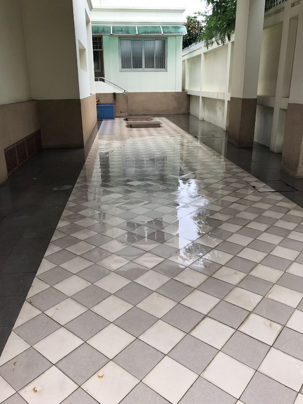 ปูกระเบื้องพื้นจอดรถเต็มพื้นที่
