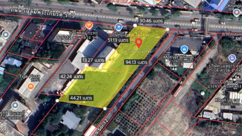 ขายที่ดินแปลงสวยติดถนน 2 ด้าน ติดถนนเฉลิมพระเกียรติ ร.9 และถนนซอยเฉลิมพระเกียรติ 12