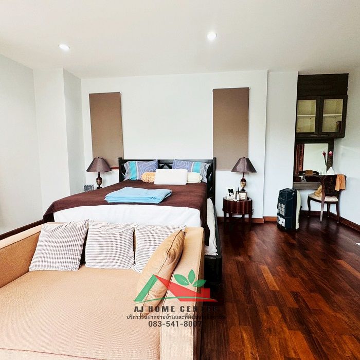 - ปูพื้นด้วยไม้จริง มีห้องนอนชั้นล่าง